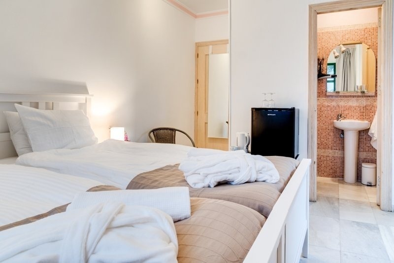 Mimosa Studio is a studio apartment for up to 2 people with a private entrance, terrace, and balcony. It features a double bed, a wardrobe with a safety box, private bathroom facilities with a hairdryer, air conditioning/heating, a small kitchen area perfect for long stays, coffee and tea facilities, a flatscreen TV, and free high-speed Wi-Fi. The surface area of the studio is approximately 22 m². Capacity: 1 and 2 adults.