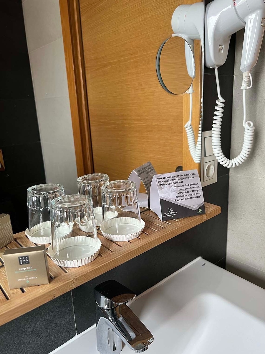All our rooms provide great comfort, equipped with air conditioning / heating, bathroom amenities, international TV channels, complimentary coffee / tea, safety deposit box (free of charge) and free Wi-Fi all throughtout the hotel. Some of the facilities at your disposal are the outdoor pool and jacuzzi, the rooftop Solarium-terrace with balinese beds and jacuzzi, sauna-hammam and the gym.