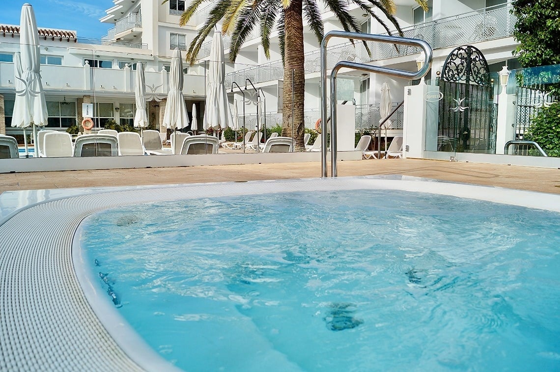 Complementa esta experiencia con la Zona de Piscina con nuestros 2 jacuzzis exteriores, ambos de agua templada y uno de ellos en el Rooftop del Hotel Villa Flamenca.
